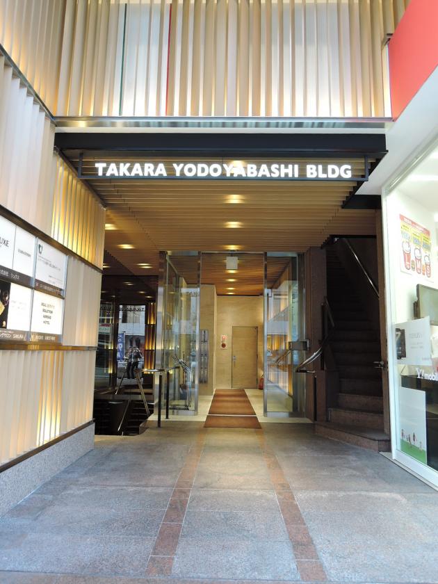 - タカラ淀屋橋ビルは淀屋橋駅徒歩1分、土佐堀通沿いでひと際、目を引く外観のビルです。外壁は木の素材を生かしたモダンなデザインに。エントランスはダウンライト照明を設置し、高級感ある印象に仕上がっています。淀屋橋駅からもすぐという立地で店舗しとても利用可能なので集客アップのポイントになります。