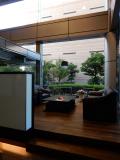 - 基準階面積約220坪の大型角ビル。公開空地を広く設けているので、明るく開放感があります。1階ロビーは広く、ちょっとした商談ができる応接用ソファースペースもあります。また、4階には約80平方メートルの共有スペースでは、ちょっとしたボルダリングができたり、ハンモックでくつろげたりでき、入居テナント様から好評です。