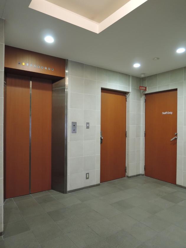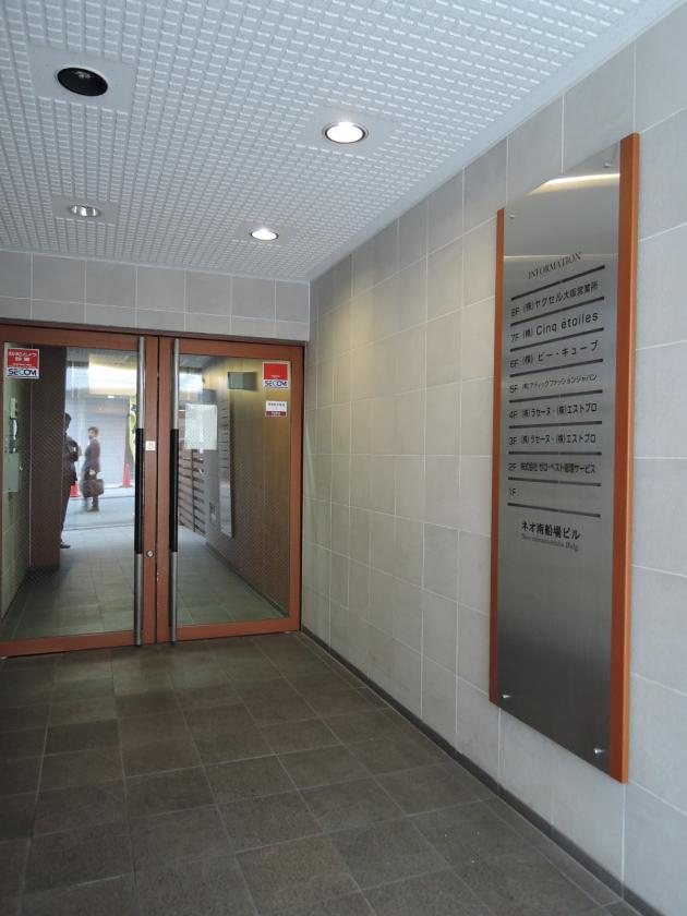 - 堺筋と三休橋筋の間にあるコンパクトオフィス。周辺にはおいしい飲食店が多数あり、ランチやアフター5は困りません。共用部は前面改装しており、木目のデザインをうまく使ったデザインを採用しています。