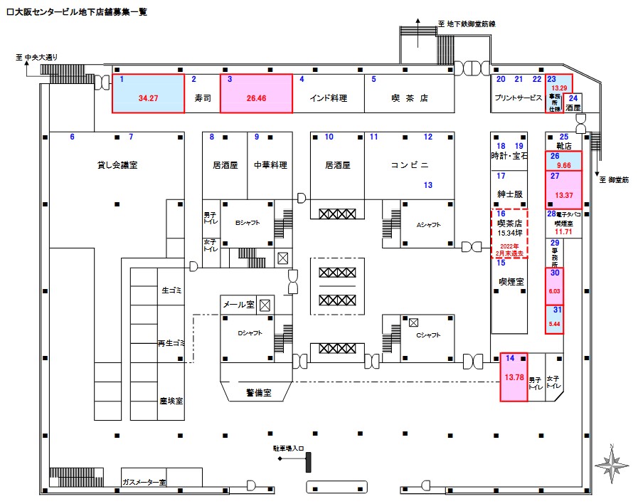 | 備考 | 地下の貸室は店舗用途となり、物販区画と飲食区画があります。詳細はお問合せ下さい。 | ||