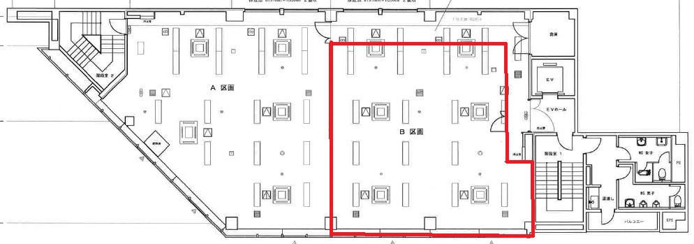 ワンフロアー約74坪~80坪ほどのワンフロアーワンテナントか約30坪ほどの2テナントで貸出しています。