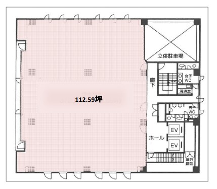 | 備考 | 重厚感のあるたたずまい。駐車場は平面と機械式立体があり、社用車のある企業様にも人気です。 基準階面積約112坪、17坪前後から分割対応可能です。 |