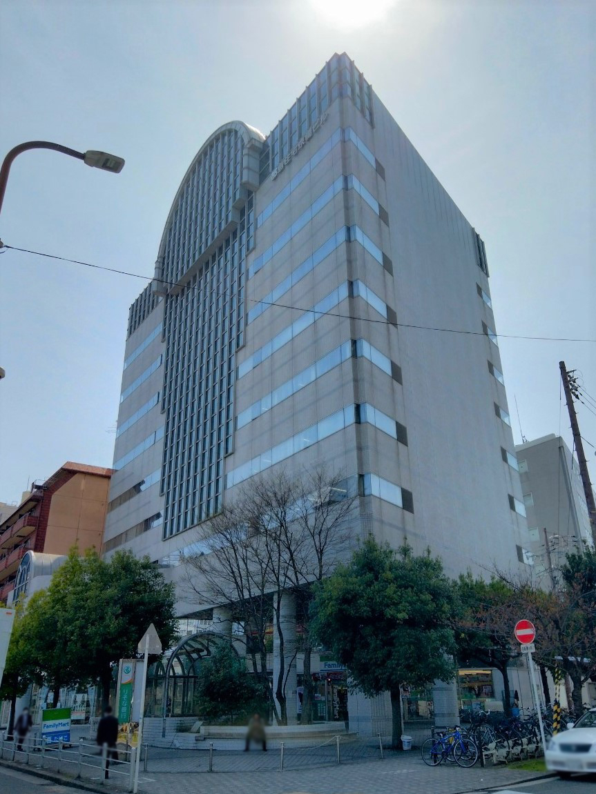 地下鉄鶴見緑地線「京橋駅」の出口ほぼ直結のオフィスビル。石貼りの重厚感溢れる共用部と角ビルで採光良好な貸室が魅力。1階にはコンビニと銀行が入居しています。