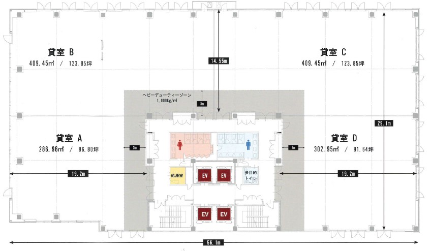 | 備考 | ・新耐震基準適合 ・制震構造 ・非常用発電機/2回線受電方式 ・LED照明 ・昼光利用自動調光システム ・天井高2.8m ・無柱空間 ・多目的トイレ ・喫煙スペース ・CASBEE(建築環境総合性能評価システム)Aランク認定 ・床荷重500㎏/ヘビーデューティーゾーン1000㎏ ・駐車場平面/バイク駐輪場/自転車駐輪場 |