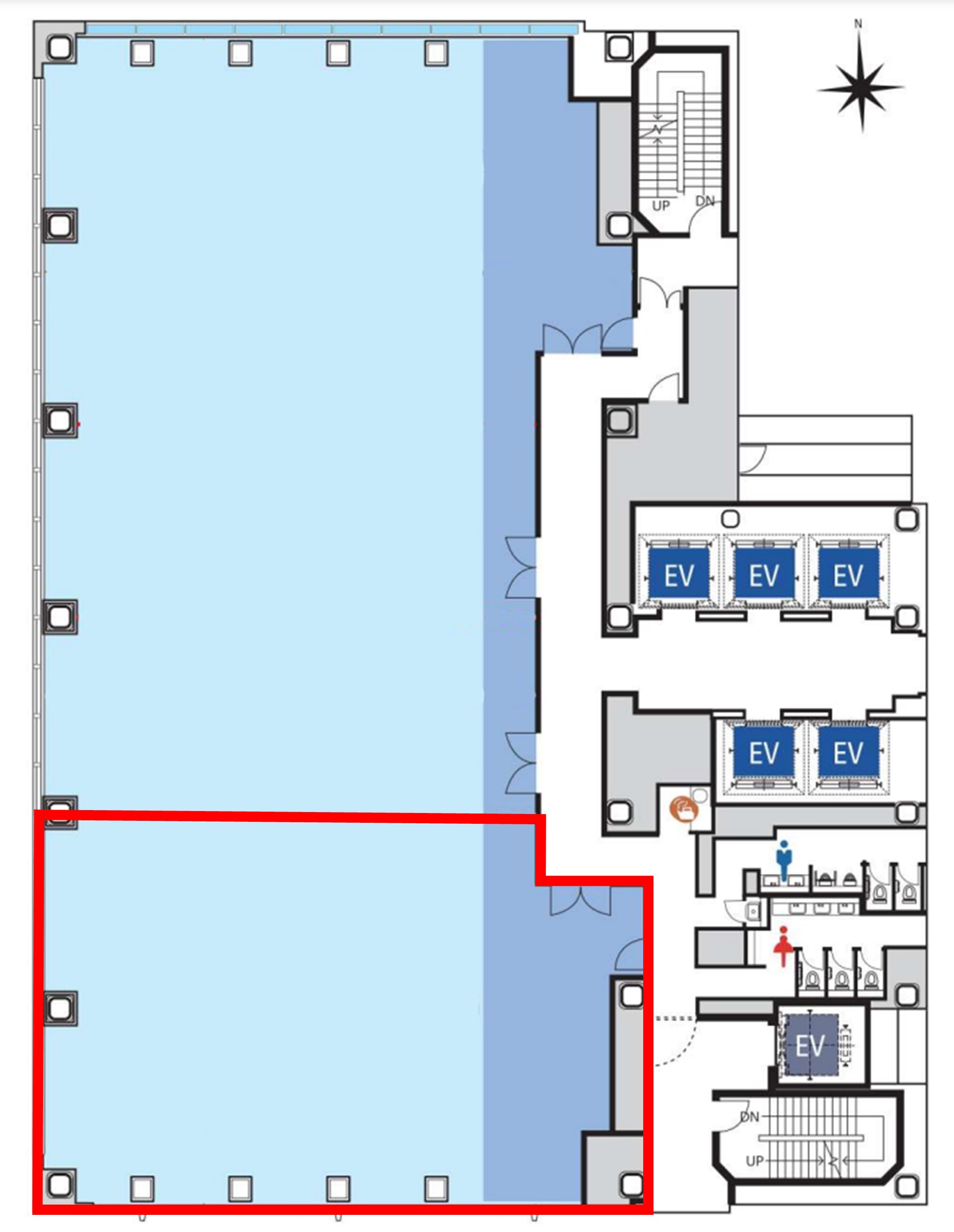 2023年3月竣工予定の御堂筋沿いの大型ハイグレードオフィス。御堂筋線「本町駅」直結の立地とグレート感は、他を寄せ付けない存在感があります。駅からは一度も地上に上がることなく、そのままオフィス会にエレベーターで移動できます。基準階面積約185坪のワンフロアー貸を基本に、30坪ずつの分割も相談可能です。上層階からの眺望は申し分なし。また、3階から9階の低層階には、リフレッシュスペースを作成できるほどのバルコニーがある特徴がある造りになっています。