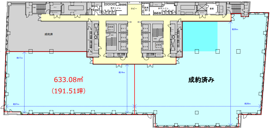| 備考 | ・駅近 ・大通り沿い ・大型ビル ・新耐震基準適合 ・エレベーター8基 ・天井高2.6m ・防災用非常用発電完備 ・非常用発電機設置スペース有 ・6階に授乳室有 |
