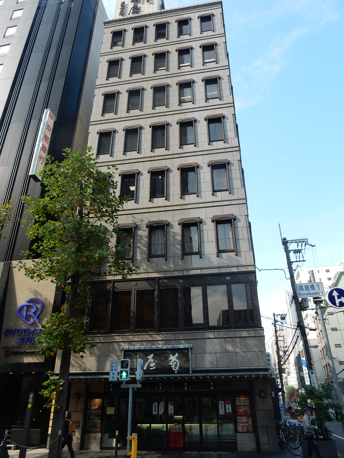 高麗橋藤浪ビルは全面に御影石を使用し、元和菓子屋の本社ビルらしい格式がある外観です。堺筋沿いの角地に建つビルですので、視認性も抜群です。コンパクトなワンフロアーワンテナントビルではありますが、ハイグレードです。2012年には共用部のリニューアルしたため、非常にきれいで使い勝手がいいです。