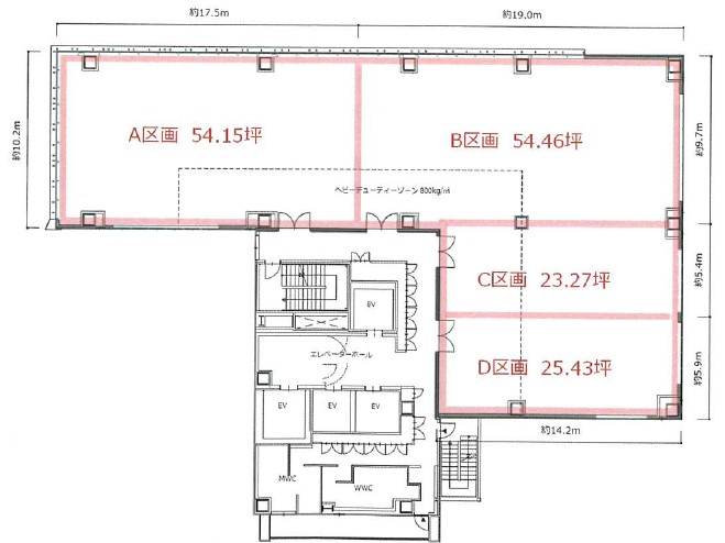 基準階約160坪で分割区画も最小約23坪まで対応可能の為、幅広いご要望に対応できます。